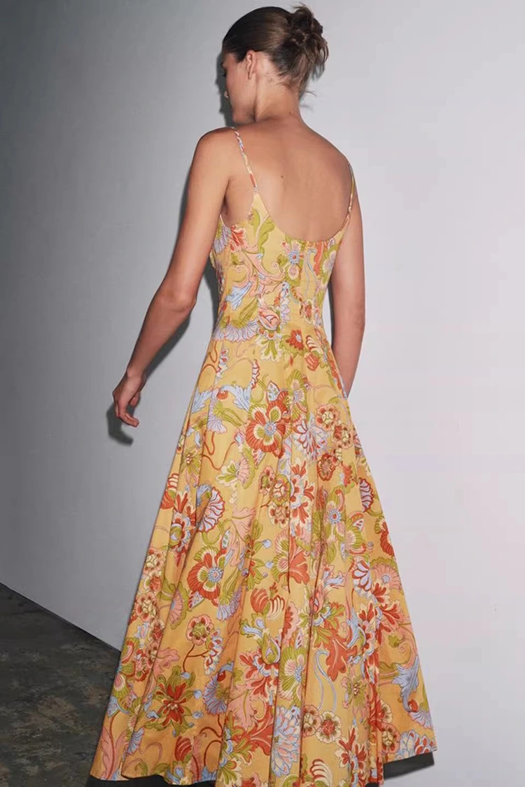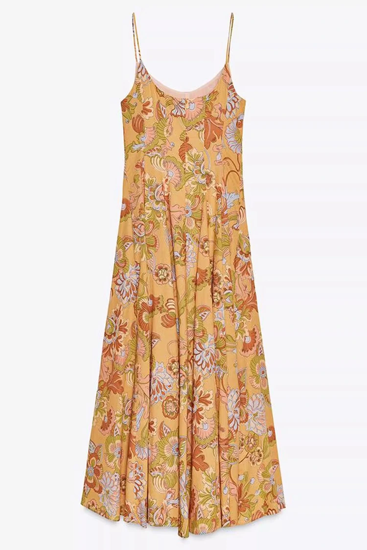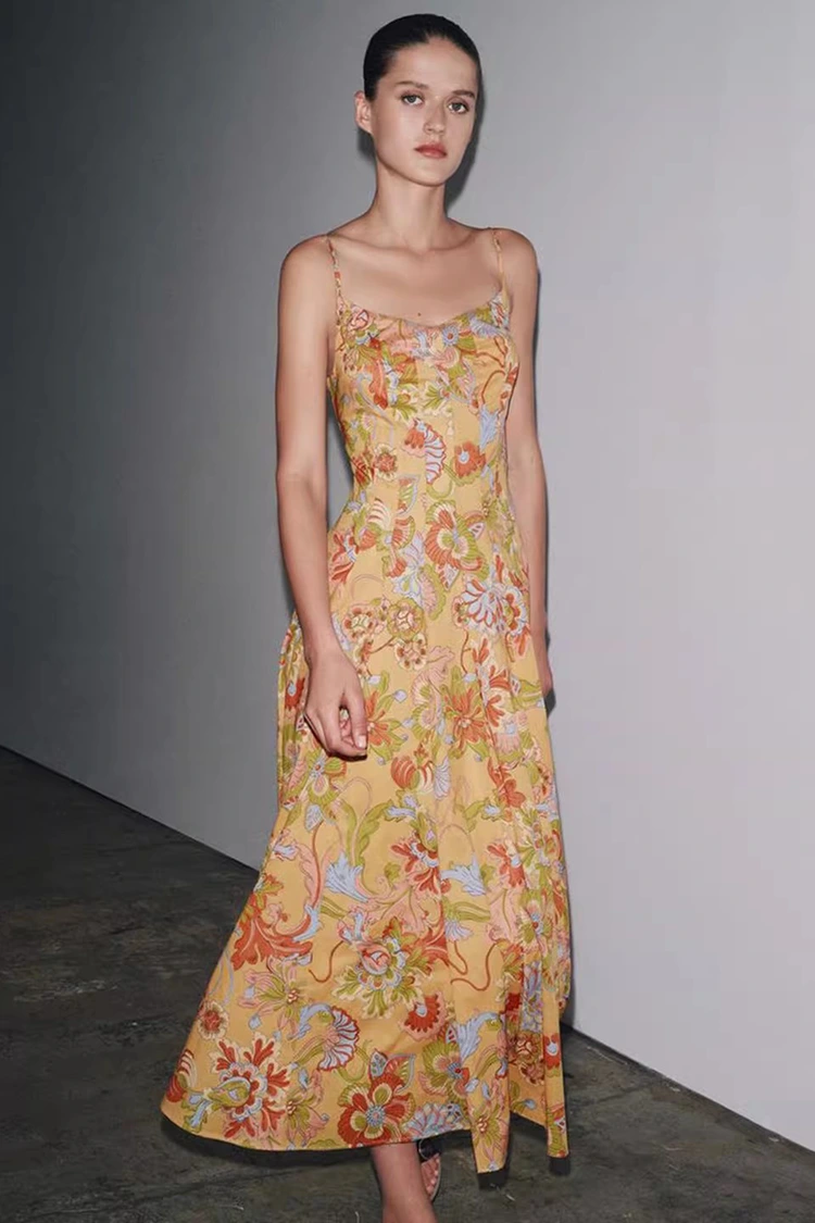 ชุดเดรสผ้าฝ้ายพิมพ์ลายดอกไม้ฤดูร้อนสำหรับผู้หญิงมีสีพื้นสีส้มอ่อน พร้อมด้วยลายพิมพ์ลายดอกไม้ที่มีพื้นผิวมากมายครอบคลุมทั่วทั้งพื้นผิว โทนสีอบอุ่นและนุ่มนวลนำมาซึ่งความมีชีวิตชีวา ราวกับว่าสวนฤดูร้อนที่เบ่งบานเต็มตัวถูกสวมอยู่บนร่างกาย ผสมผสานบรรยากาศโรแมนติกย้อนยุคเข้ากับความรู้สึกผ่อนคลายในฤดูร้อน ซิลลูเอทโดดเด่นด้วยดีไซน์แขนกุดและห้อยคอ พร้อมเส้นสายที่ดูสะอาดตา ซึ่งสามารถเผยให้เห็นเส้นไหล่และคอได้อย่างเชี่ยวชาญ จัดรูปทรงตามสัดส่วน และในขณะเดียวกันก็หลุดพ้นจากข้อจำกัดของแขนสั้น ตอบโจทย์การแต่งตัวในฤดูร้อนที่ร้อนระอุ ชายกระโปรงหลวมและปานกลาง ไม่จู้จี้จุกจิกเกี่ยวกับรูปร่าง และสามารถซ่อนข้อบกพร่องเล็กๆ น้อยๆ ที่เอว หน้าท้อง และขาได้อย่างง่ายดาย เป็นมิตรกับผู้หญิงทุกประเภท การผสมผสานที่ลงตัวระหว่างลายพิมพ์ย้อนยุคและรูปทรงเพรียวบางทำให้ชุดนี้ไม่เพียงแต่แสดงถึงเสน่ห์ของผู้หญิงเท่านั้น แต่ยังรักษาสไตล์ลำลองและผ่อนคลาย ทะลุขีดจำกัดของการแต่งกายเพียงชุดเดียว และปรับให้เข้ากับสไตล์ต่างๆ เพื่อการสร้างสรรค์